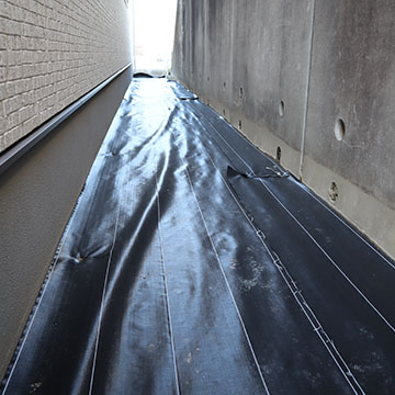 (シート上砂利敷)太陽光を遮断することにより雑草の成長を抑えることができるため、除草の手間を省くことができます。