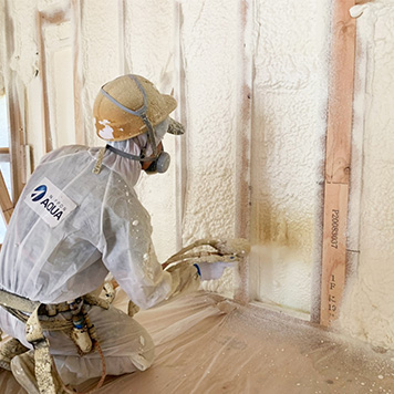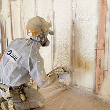 長期にわたり断熱性能を維持するために、一般的なグラスウールによる断熱材と併用して 2 階天井以外の外壁部分にウレタン吹き付け式の断熱材を採用しています。ウレタン吹き付けを使用することにより細部に生じる隙間を完全に解消することが可能になるため、結露による建物の劣化を防ぎ、耐久性を高めます。