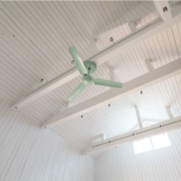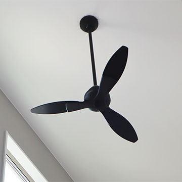 開放的な吹き抜けの雰囲気を一層高めてくれるシーリングファンは、宮崎の気候にとても相性が良いです。部屋の中の空気を循環し、冷暖房の効率も良くなります。