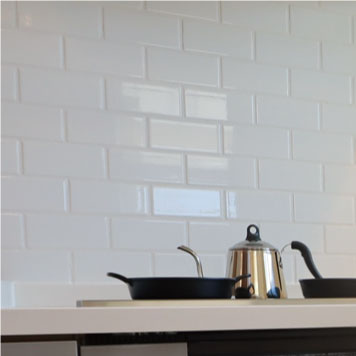 一般的な住宅では、タイル調のクロスや疑似商品を利用することが多いのですが、ここでは本物のタイル(陶器)を使用しております。