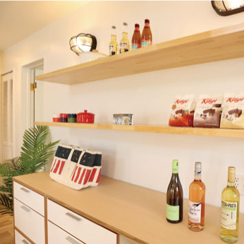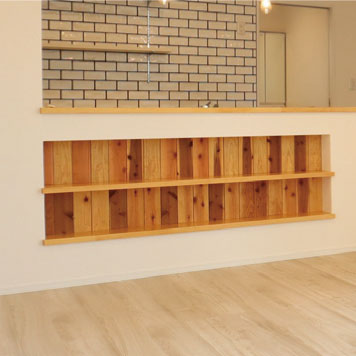 家族の写真を飾ったり、おしゃれな小物を置いたりなど使い勝手は様々。家族の個性を見せる展示スペースです。 -