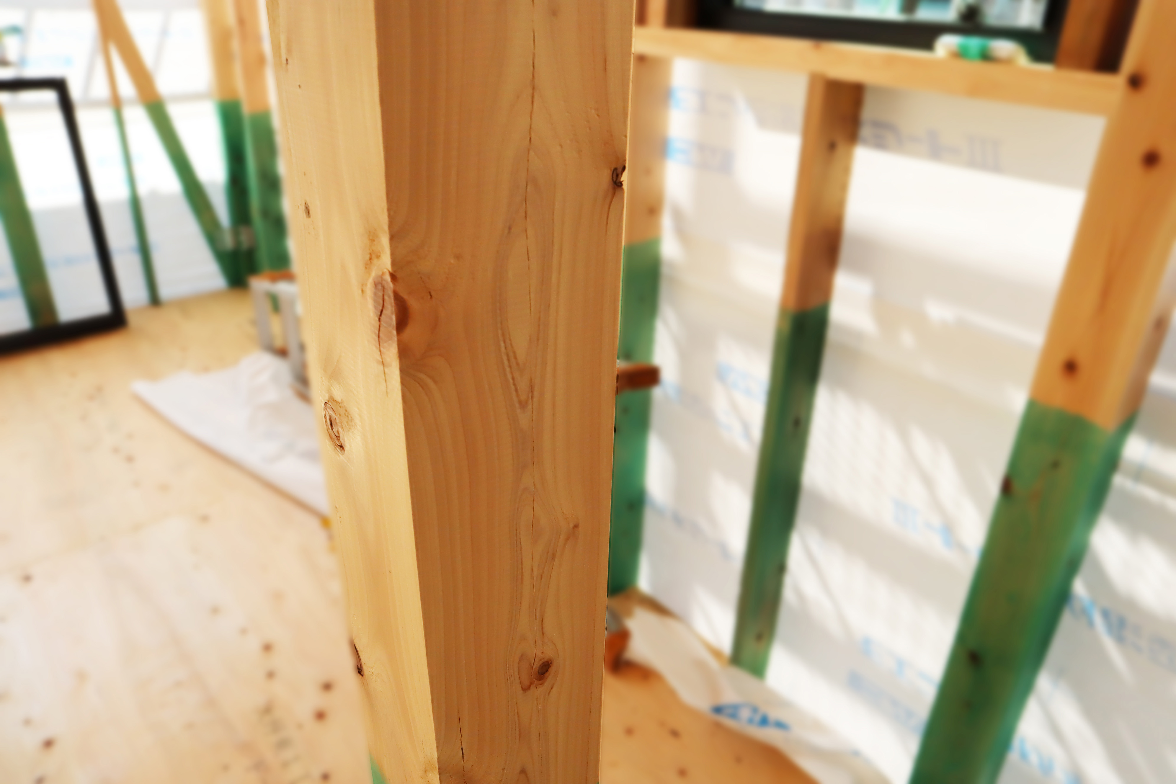 ヒノキは従来使われるスギよりも固く腐りにくい性質であり虫害にも強いため、柱や土台など建物の主要な構造部材に使うことでより強度な住宅にすることができます。