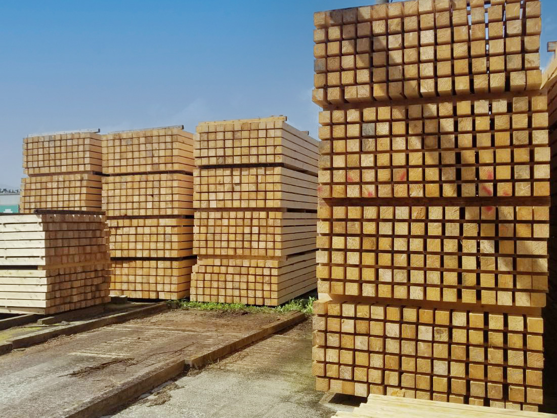人工的に温度や湿度を上げて乾燥させた木材のことでKD材ともいいます。木材の含水率(木材内部に含まれる水分量)を基準値に設定することができ、木材としての耐久性を高めることができます。