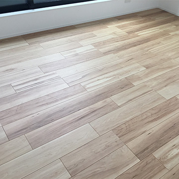 当社では建物の耐久性や耐震性を上げる工夫を重ねて行っています。スギに比べ耐久性・耐水性のあるヒノキを土台と柱に、集成材という一般的な木材よりも強度のある木材を梁にそれぞれ採用しています。