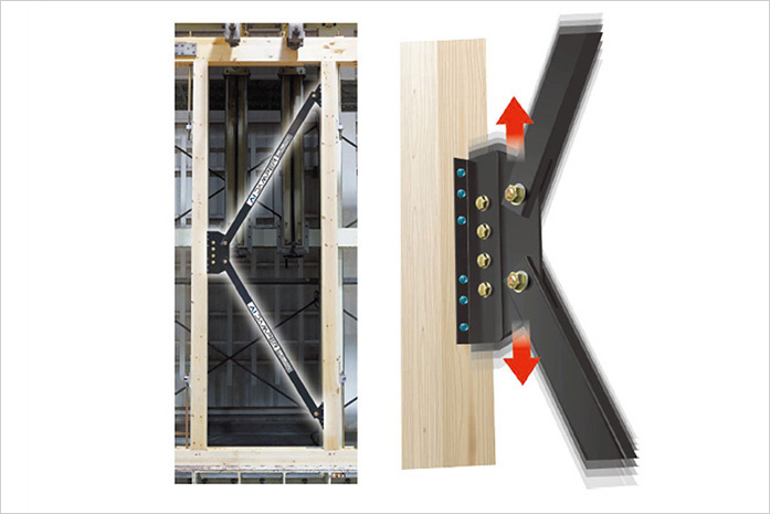 また、揺れを吸収する装置である制震ダンパーという補強部材も採用しています。制震ダンパーを住宅に組み込むと、地震発生時における家の変位を大幅に低減できる場合があります。変位量の抑制は家の損傷を最小限に抑え、繰り返す地震に対しても強い強度を期待できます。 -