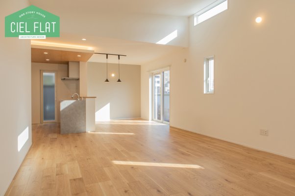 リビングは約24帖の広さがあるので、ダイニング・ソファ・テレビボードなどを置いてもゆったり。