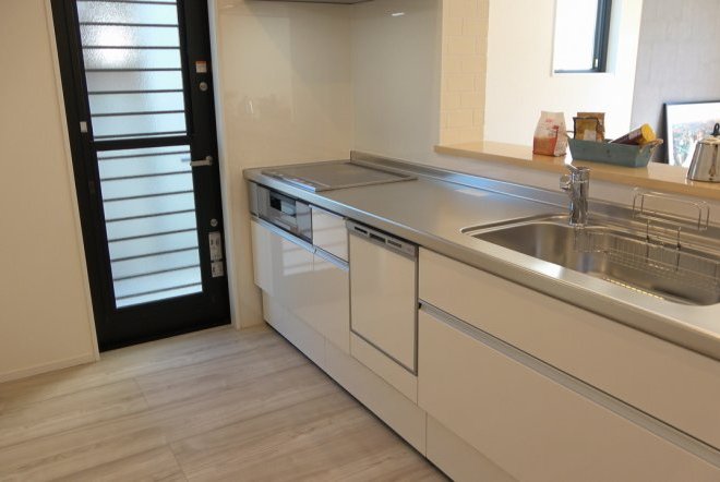 一度に5人分程の片付けが可能な食器洗い乾燥機付き!家事の時短でママのゆっくりタイムを確保♪シンクは水流の広がりをおさえて、汚れがスムーズに流れる様設計されており、後のお手入れがグッと楽になります。