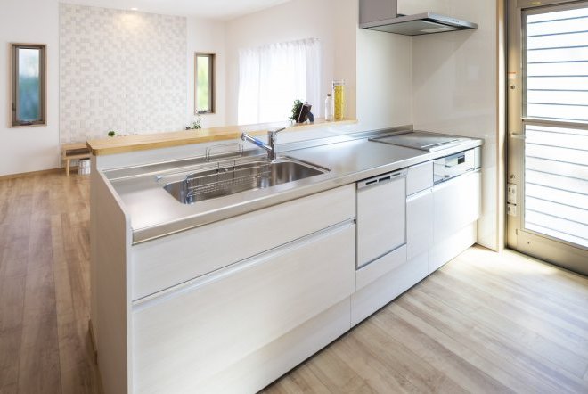 一度に5人分程の片付けが可能な食器洗い乾燥機付き!家事の時短でママのゆっくりタイムを確保♪シンクは水流の広がりをおさえて、汚れがスムーズに流れる様設計されており、後のお手入れがグッと楽になります。