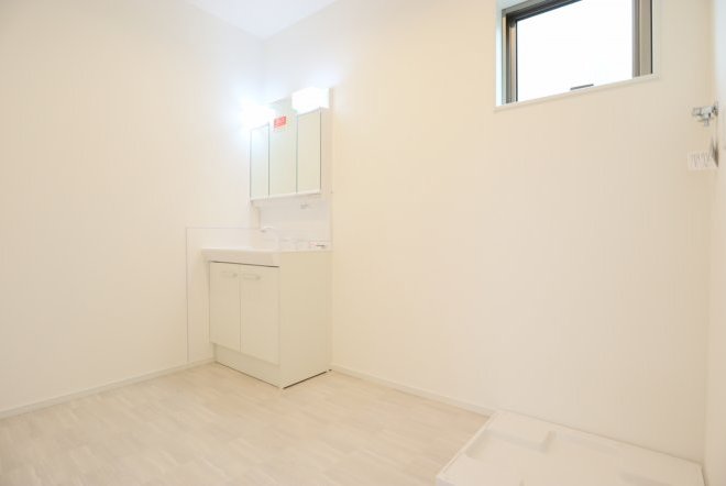 換気が可能な嬉しい小窓付き!ゆったり使える陶器製大型洗面器で水栓周りにやや傾斜があり水滴が溜まりにくい構造です!