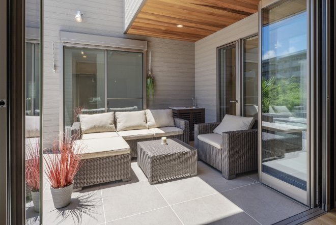 休日はゆっくりオープンテラスでお茶など楽しむのはいかがですか。ゆったりとした時間を過ごせる贅沢なひとときです。