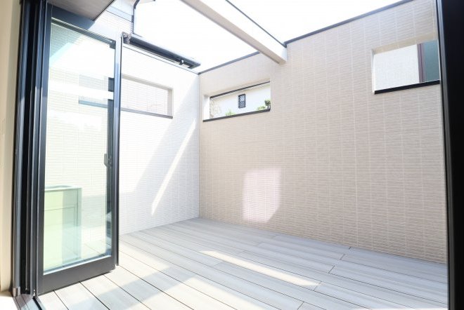 ウッドデッキはプライバシーが守れるように壁付のデザインを採用しております。窓を開けっぱなしでも、カーテンを付けなくても人目を気にせず、家族や仲間と自由に楽しく過ごすことができます。