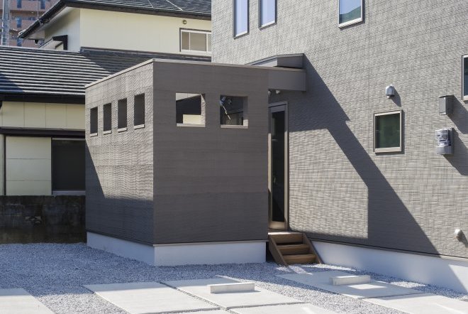 【FAZINO】の特徴は何と言っても外部にある小さな部屋のようなスペース、「アペル」。パジャマのままリビングから「ふらっ」と外にでて人目を気にせずリラックス。リビング窓も4枚折れ戸を採用しています。