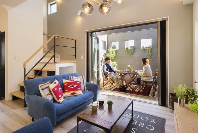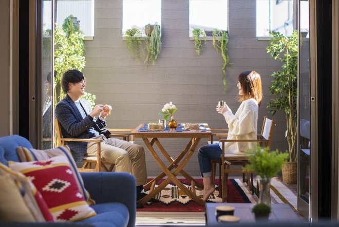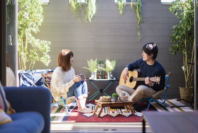 ウッドデッキはプライバシーが守れるように壁付のデザインを採用しております。窓を開けっぱなしでも、カーテンを付けなくても人目を気にせず、家族や仲間と自由に楽しく過ごすことができます。