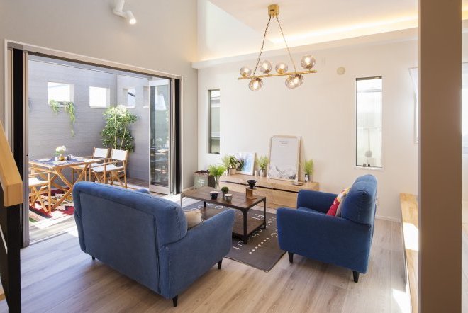 ファジーノは『太陽と風を感じる家』をコンセプトに家の外部にプライベート空間「アペル」を設置し、外と室内を一体として利用する住まいをご提案します。宮崎の心地よい「太陽」と「風」を感じながら過ごす家族との日常は、リビングを最も心地よい場所にします。