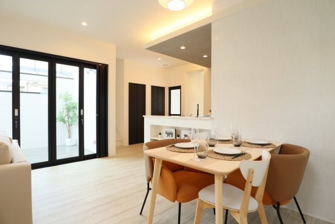【FAZINO】の特徴は何と言っても外部にある小さな部屋のようなスペース、「アペル」。パジャマのままリビングから「ふらっ」と外にでて人目を気にせずリラックス。リビング窓も4枚折れ戸を採用しています。