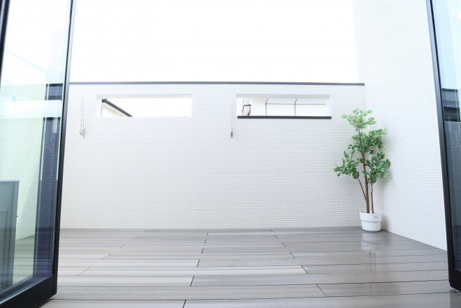 ウッドデッキはプライバシーが守れるように壁付のデザインを採用しております。窓を開けっぱなしでも、カーテンを付けなくても人目を気にせず、家族や仲間と自由に楽しく過ごすことができます。