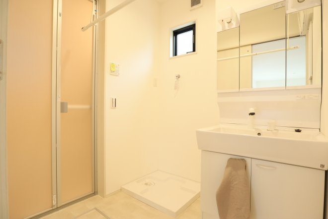 換気が可能な嬉しい小窓付き!三面鏡の裏側は収納スペースとなっているため、洗面まわりの小物を収納するのにちょうど良く見た目もすっきりします。また、様々な角度からヘアスタイルの確認ができるのも三面鏡が付いている洗面化粧台のメリットです。