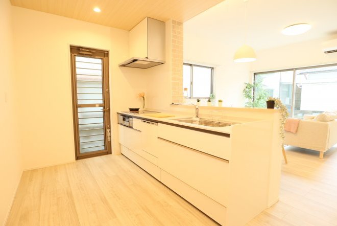 一度に5人分程の片付けが可能な食器洗い乾燥機付き!家事の時短でママのゆっくりタイムを確保♪シンクは水流の広がりをおさえて、汚れがスムーズに流れる様設計されており、後のお手入れがグッと楽になります。