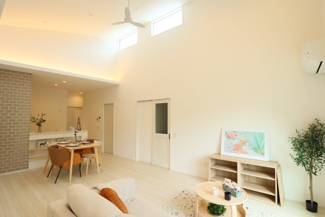 開放的な吹き抜けの雰囲気を一層高めてくれるシーリングファンは、宮崎の気候にとても相性が良いです。部屋の中の空気を循環し、冷暖房の効率も良くなります。