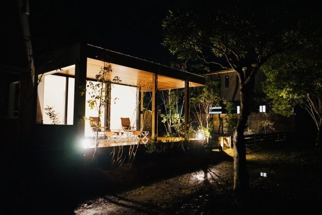ウッドデッキを跳ね出すことで、室内が外に延長されるように感じることで外の空間を室内に居ながら強く感じることができるようになります。室内に居ながらキャンプ場にいるような感覚になります。
