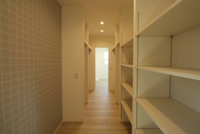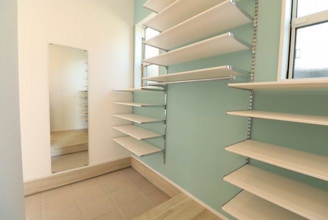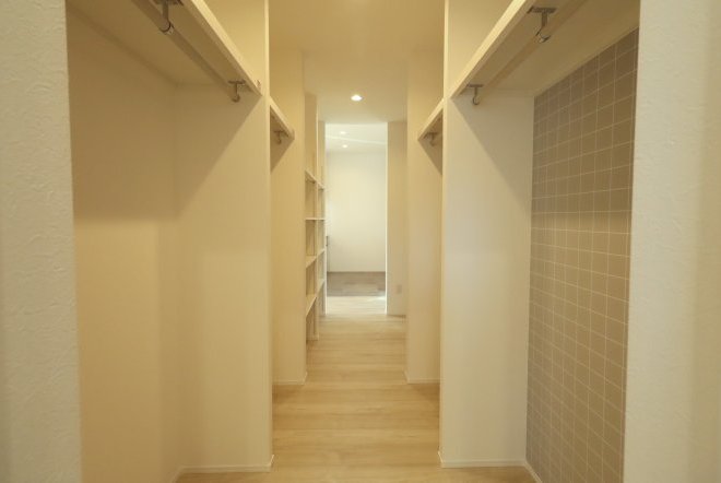 洗面室と行き来ができ、お着替えやメイク用品置き場に便利。