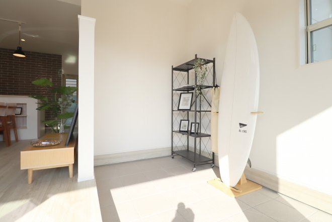 サーフィン道具のお手入れや、サーフボードを並べておしゃれなインテリア空間にもなります。