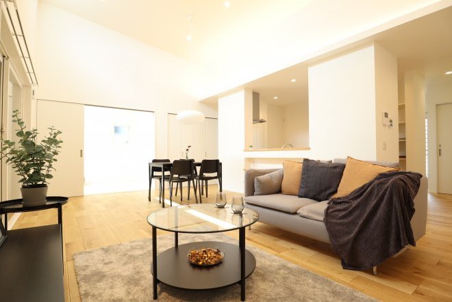 ご家族の集まるLDKは明るく広々した空間に。キッチンは対面式を採用。ご家族の様子を見ながらお料理が出来ます。