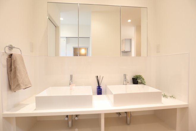朝の忙しい時間帯などご家族と洗面台の利用が重なっても同時に使えるので混雑しにくくなります。