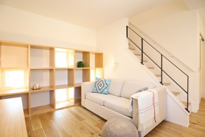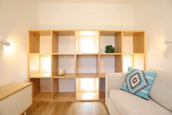 たっぷりの収納ができる本棚。本を収納したり小物を飾ってインテリアを楽しむのもいいですね。