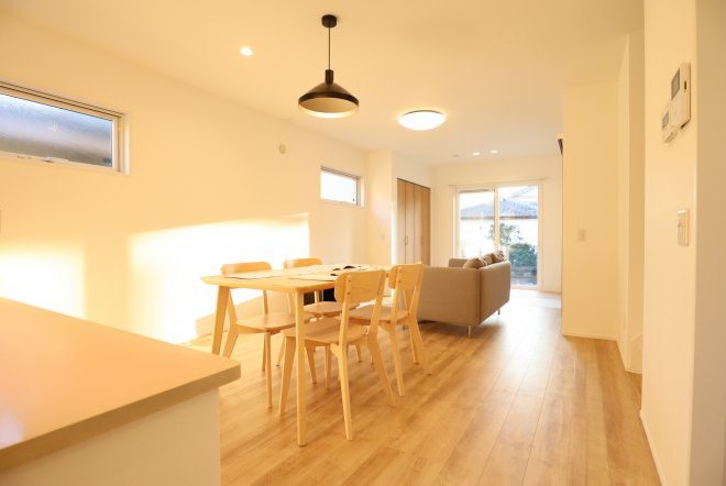 ご家族の集まるLDKは明るく広々した空間に。キッチンは対面式を採用。ご家族の様子を見ながらお料理が出来ます。