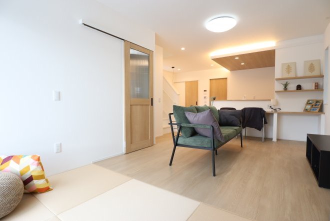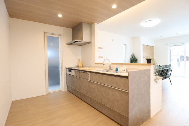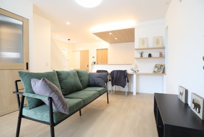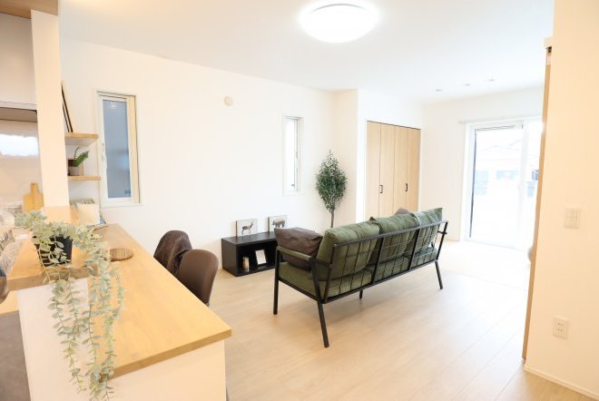 ご家族の集まるLDKは明るく広々した空間に。キッチンは対面式を採用。ご家族の様子を見ながらお料理が出来ます。