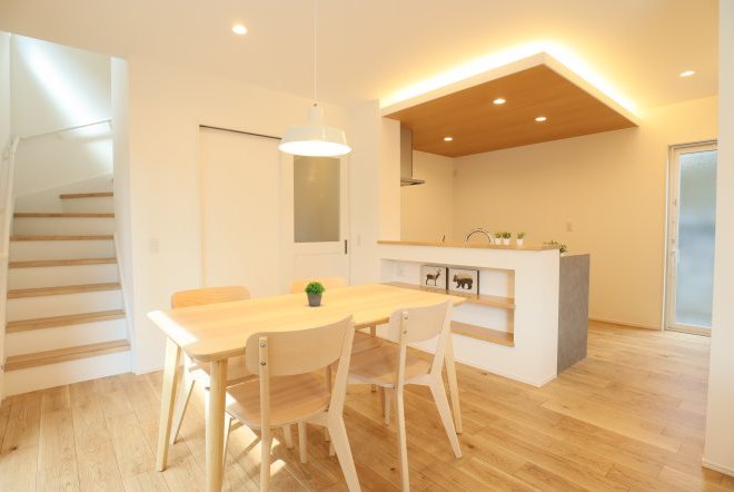 ご家族の集まるLDKは明るく広々した空間に。キッチンは対面式を採用。ご家族の様子を見ながらお料理が出来ます。