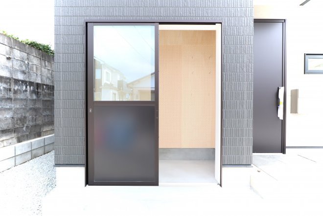 アウトドア用品やお庭のお手入れ道具など外で使う道具をまとめて収納することができます。壁はパンチングボードとなっているため、穴にフックをかけて壁掛け収納としても活用できます。