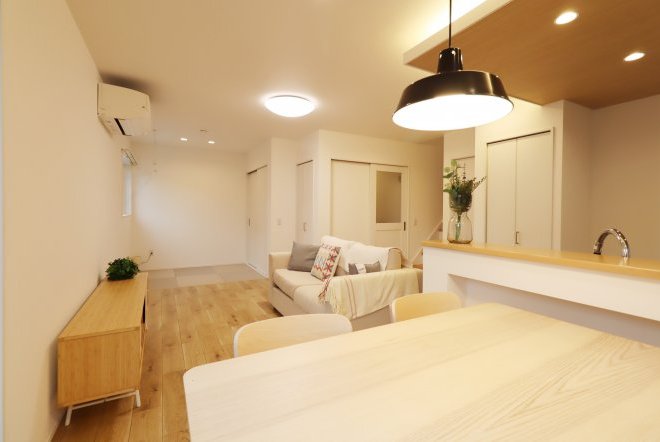 ご家族の集まるLDKは明るく広々した空間に。キッチンは対面式を採用。ご家族の様子を見ながらお料理が出来ます。