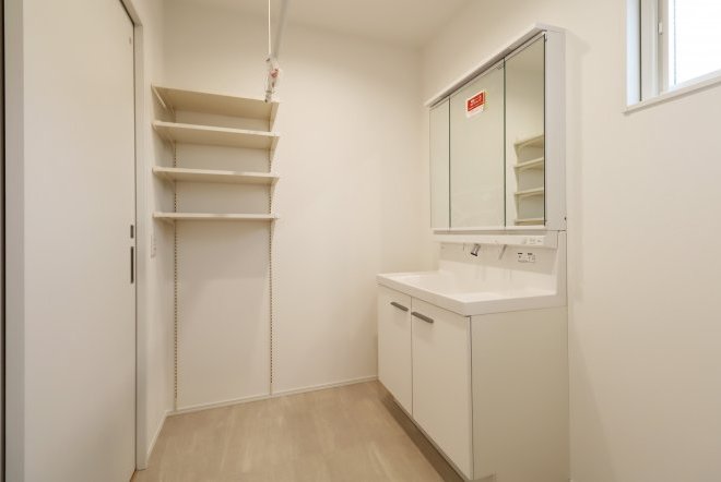 ため、洗面まわりの小物を収納するのにちょうど良く見た目もすっきりします。また、様々な角度からヘアスタイルの確認ができるのも三面鏡が付いている洗面化粧台のメリットです。