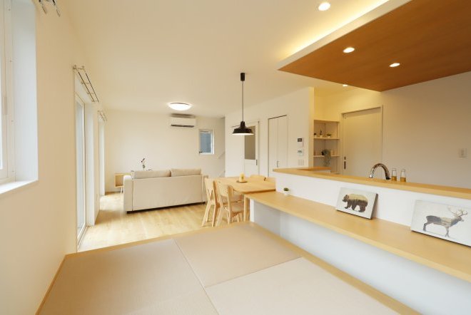ご家族の集まるLDKは明るく広々した空間に。キッチンは対面式を採用。ご家族の様子を見ながらお料理が出来ます。
